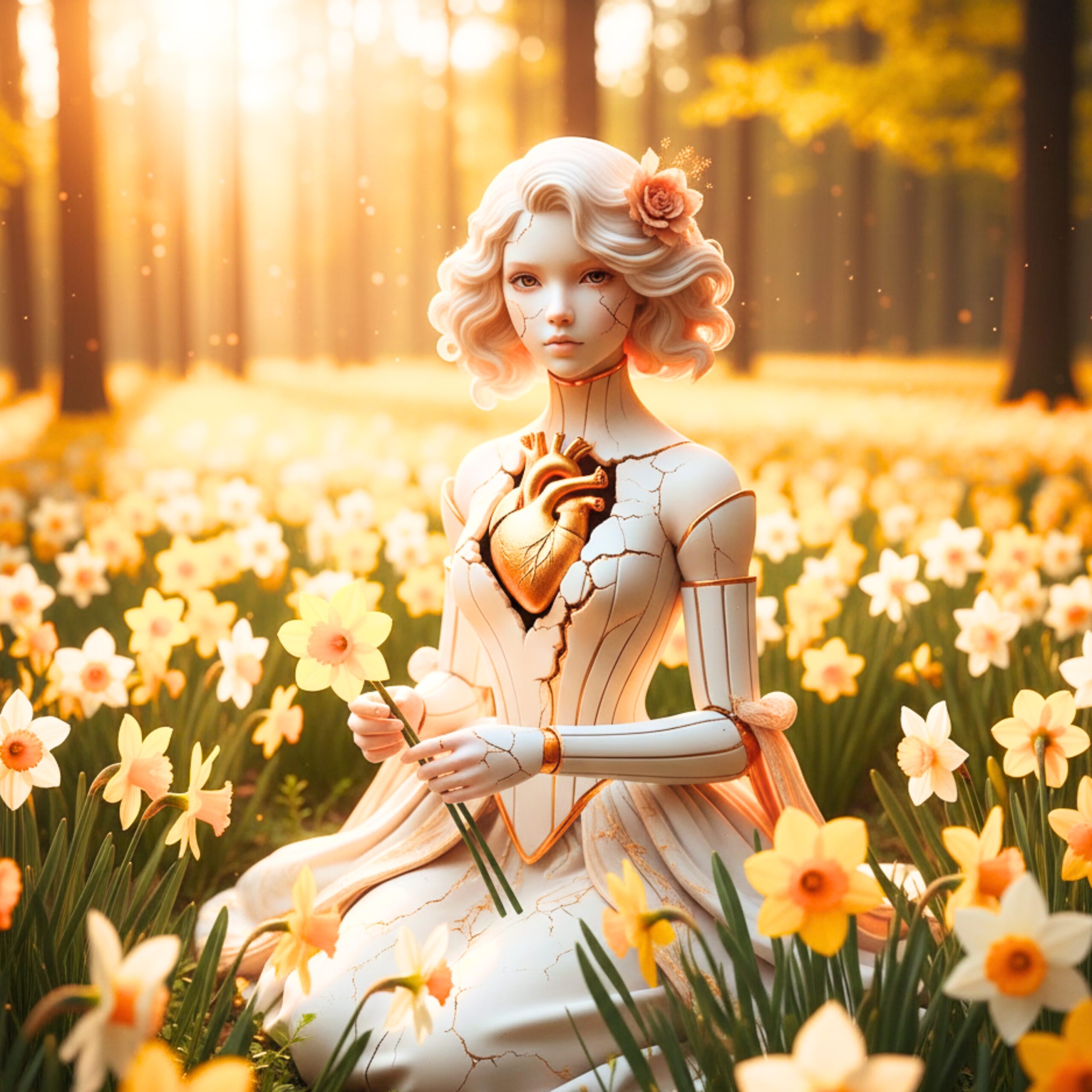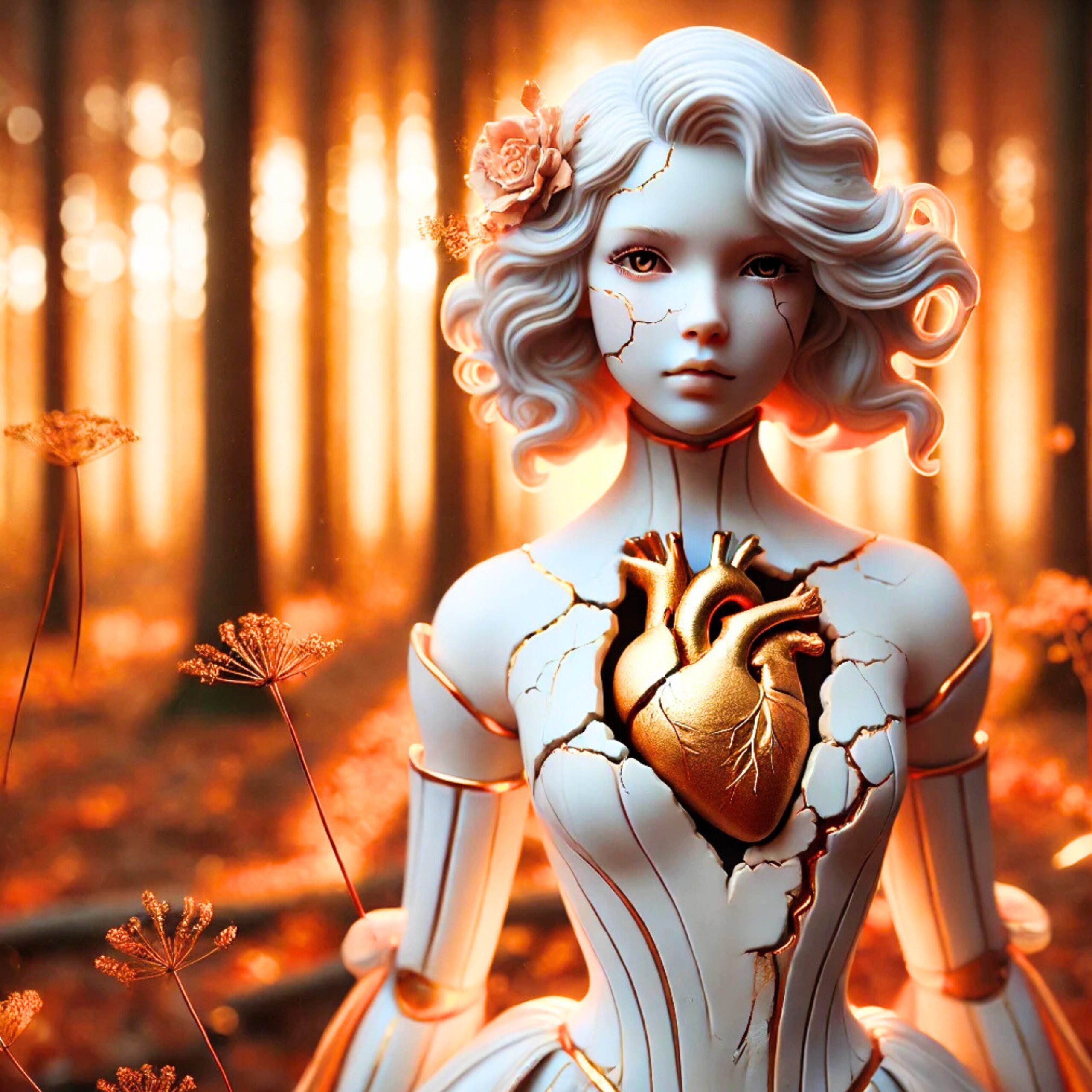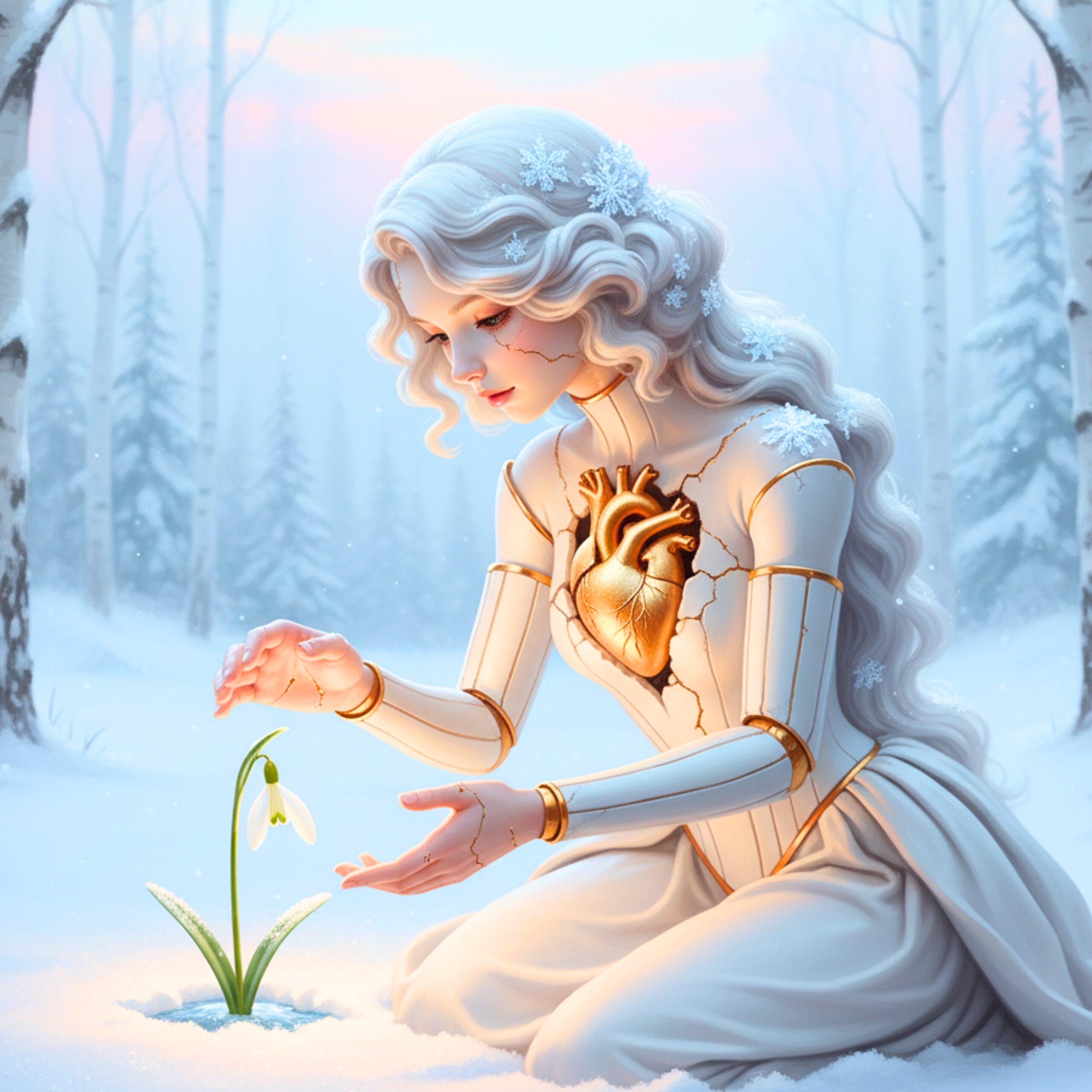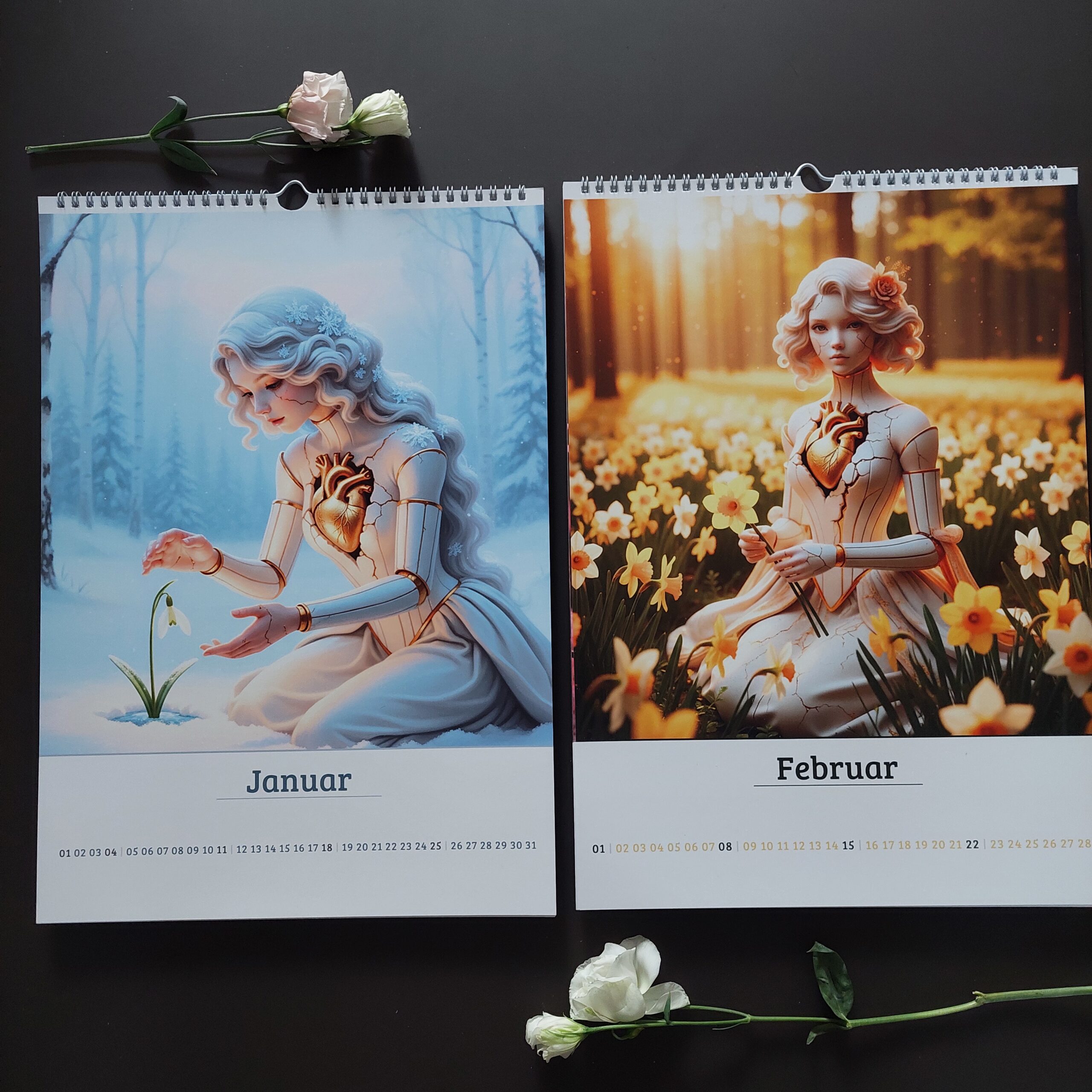 Die Bilder sind der Jahreszeit entsprechend. Die Heldin geht stark und mit einem großen Herzen durch das Jahr 2026. Das Porzellan erinnert uns an das weiße Gold, das zwar zerbricht, aber mit den goldenen Adern noch stärker wird.